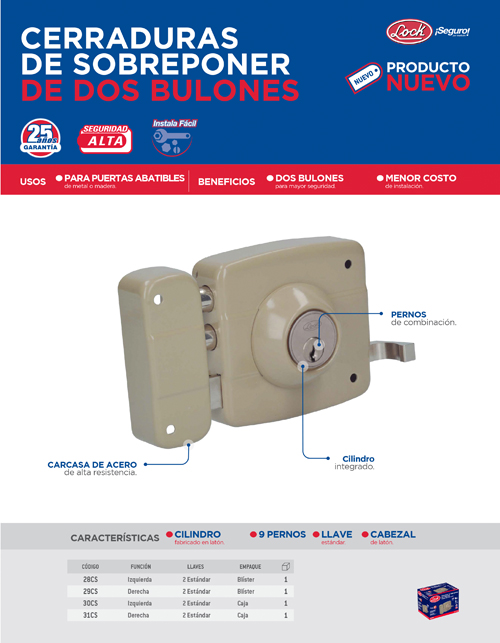 28CS Cerradura de sobreponer de dos bulones, izquierda Lock.