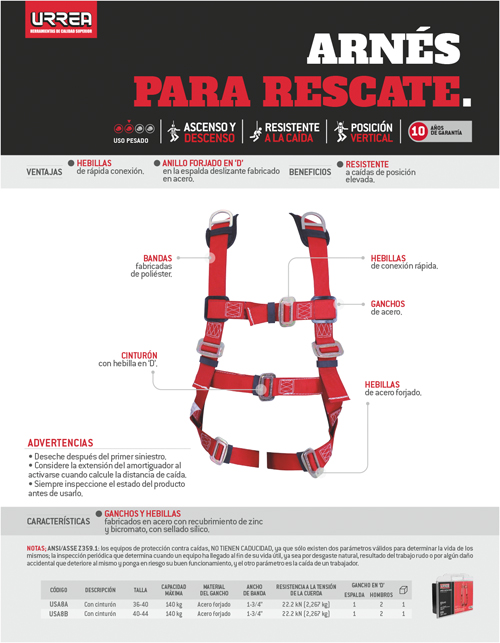 Arnés de rescate con cinturón talla 4044 Urrea