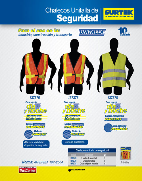 Chalecos de seguridad, Equipo de seguridad