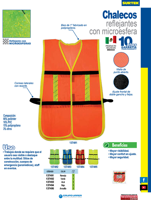 Es ideal para utilizarse en trabajos donde se rEquipouiere que el usuario sea visible o destaque entre la multitud. Sitios de construcción, cuerpos de emergencia, staff en eventos.