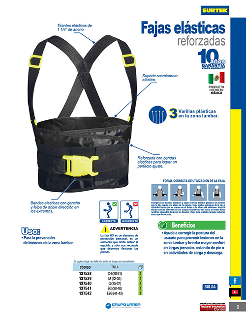 Categorías: Equipo de seguridad, Fajas