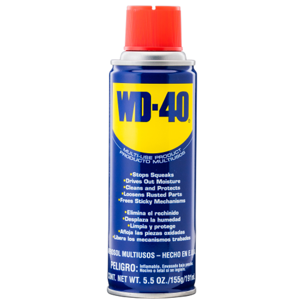 WD-40 Producto Multiusos de 5.5 onzas lubrica, penetra, desplaza la humedad, protege y limpia. Protege contra el óxido y la corrosión, afloja piezas atascadas y elimina suciedad.