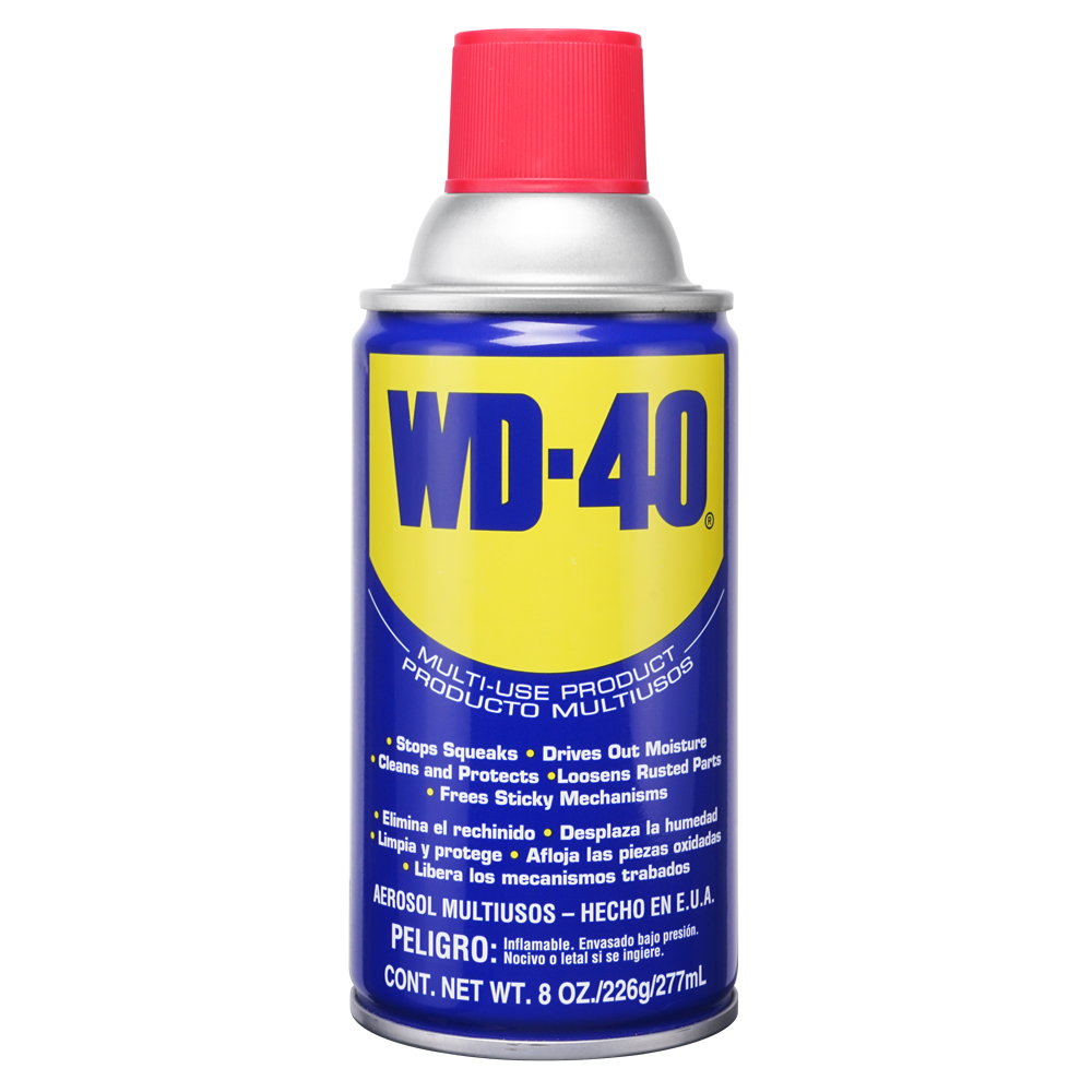 WD-40 Producto Multiusos de 8 onzas lubrica, penetra, desplaza la humedad, protege y limpia. Protege contra el óxido y la corrosión, afloja piezas atascadas y elimina suciedad.