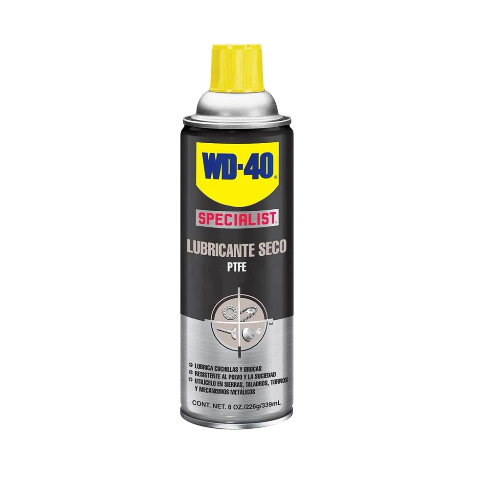 WD-40 Specialist® Dry Lube con PTFE proporciona una lubricación superior y una protección contra la corrosión de larga duración sin residuos aceitosos. Se utiliza mejor donde se requiere limpieza y máximo rendimiento, ya que se seca rápidamente dejando una película lubricante que resiste la acumulación de suciedad, polvo y aceite. Excelente para reducir la fricción y el desgaste en hojas y brocas, rieles de puertas y ventanas, guías, cintas transportadoras, rodillos, bisagras, sierras de mesa, tornos, herramientas y equipos eléctricos. Efectivo en temperaturas que van desde -50 ° F a 500 ° F.